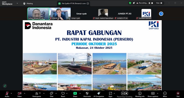 Rapat gabungan Dewan Komisaris, Direksi & BOD-1 PT IKI (Persero) Pembahasan Laporan Evaluasi Kinerja Bulanan Periode Oktober 2025 yang dilaksanakan secara daring melalui Zoom Meeting. Makassar. (Jumat, 24 Oktober 2025).